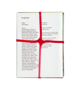프랑스어로 글을 쓰는 스웨덴 출신의 작가 안나 메제이 Anna Mezey 의 책이다. 작가가 프랑스 문화부 지원을 받는 ‘아틀리에 메디시 Ateliers Médicis - Création En Cours’ 프로젝트의 일환으로 초등학교 학생들과 진행한 문예 창작 수업의 결과물인 이 책은 총 2권의 소책자와 6장의 포스터로 이루어져 있다. 중철 제본된 2권의 소책자 ‘Ce qui reste’ 와 ‘Je me souviens’ 은 각 아이들이 쓴 하이쿠와 작가와 아이들이 함께 기억에 대해서 공동 집필한 글이 실려 있다. 그 사이로 6장의 포스터는 앞면은 아이들의 글이 뒷면엔 작가 안나 메제이의 사진이 실려있다. 낱권으로 분리 가능한 이 책은 각각이 하나의 챕터이자 독립적인 출판물로서 읽힐 수 있다.