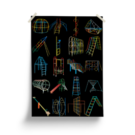 'люлки' is a poster created by Hubert Crabières. It gathers children's games photographed in public parks, between Plovdiv and Madan. These metal games, very numerous in all the districts of the cities and villages are slowly disappearing, replaced by new ones, less complex but undoubtedly less dangerous. At night, they emerge from the darkness like colourful and nostalgic ghosts.